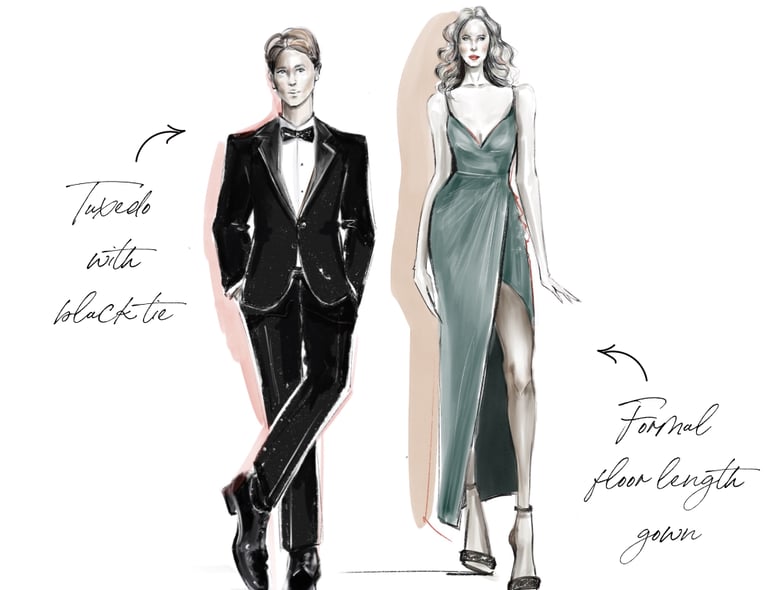 Le code est robe de soirée longue . Une robe cocktail élégante est tolérée, mais misez sur le chic absolu.
